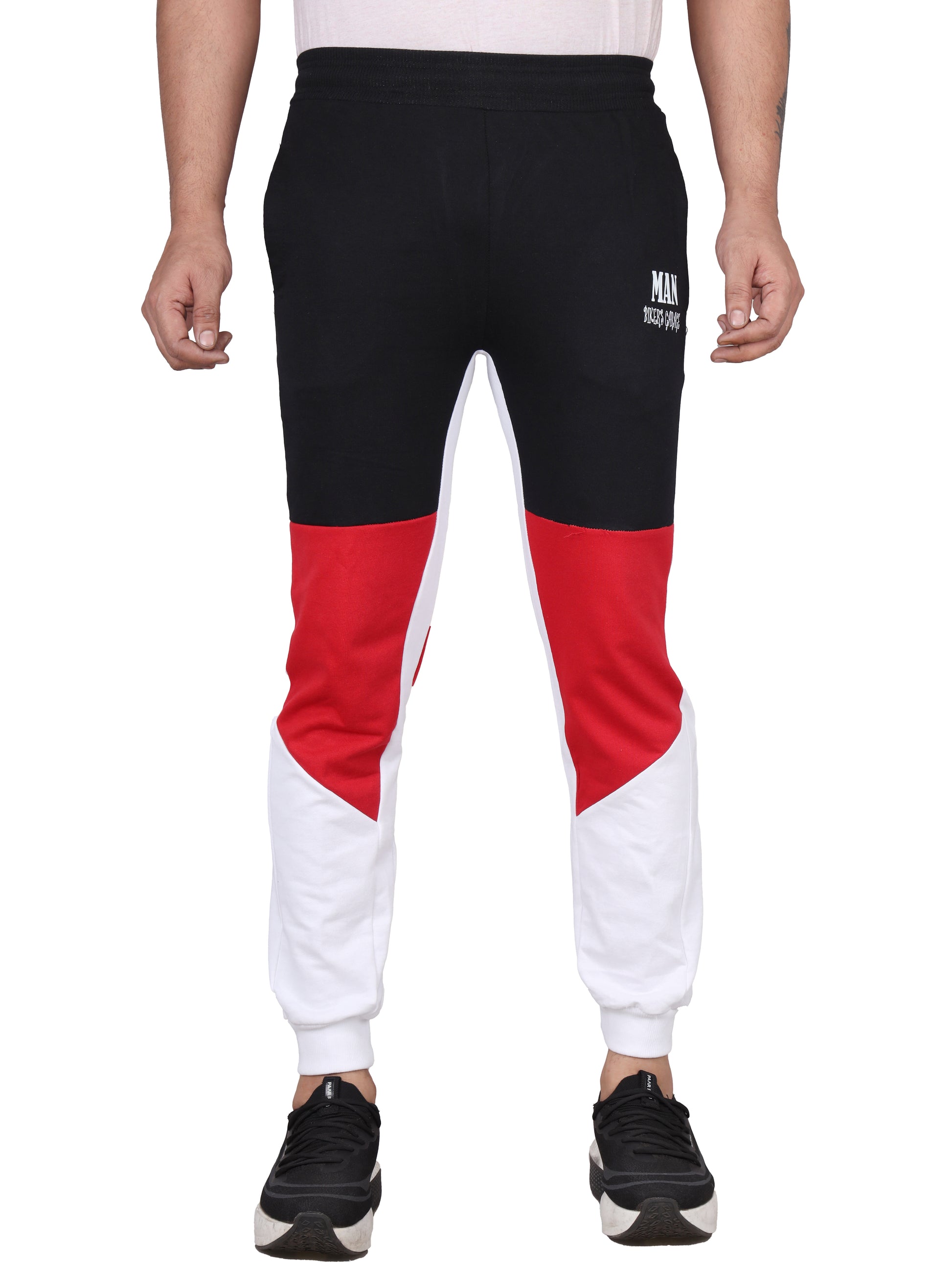 Biker's Garage Men's Colorblock Joggers – Black, Red & White Track Pants
